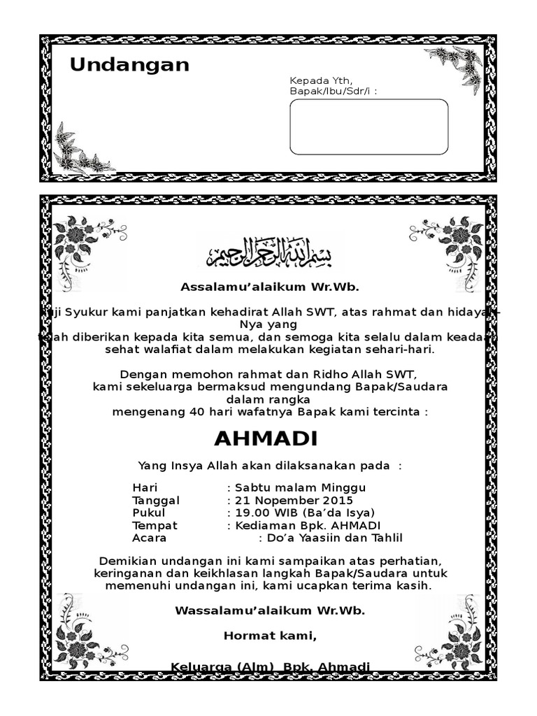 Beberapa diantaranya adalah surat undangan pengajian akbar, pengajian rutin, pengajian pernikahan, pengajian maulid nabi, pengajian umum, pengajian syukuran, dan lain. Bersama ini kami mengharapkan kehadiran bapak/ibu/saudara/i untuk menghadiri acara syukuran atas akan dilangsungkannya pernikahan putri kami : Contoh undangan syukuran pernikahan rumah baru wisuda. Banyak orang yang mempercayakan pembuatan atau penulisan contoh surat undangan pernikahan pada beberapa percetakan ataupun jasa lain. Nah, surat resmi biasa digunakan untuk tujuan acara yang resmi, sedangkan. Download & view contoh surat undangan syukuran as pdf for free. Contains 0 pages, you can download it for free by clicking in download button below. Contoh surat permohonan penetapan sebagai kawasan mirror/english_orig/3121_p.contoh surat analisis genre wacana surat undangan widyaningrum genre wacana surat undangan pernikahan agama islam di diy. Download contoh surat undangan syukuran pernikahan. Download contoh surat undangan syukuran pernikahan. Contoh surat undangan syukuran rumah barufull description. Bersama ini kami mengharapkan kehadiran bapak/ibu/saudara/i untuk menghadiri acara syukuran atas akan dilangsungkannya pernikahan putri kami : Contoh undangan akad nikah islami.